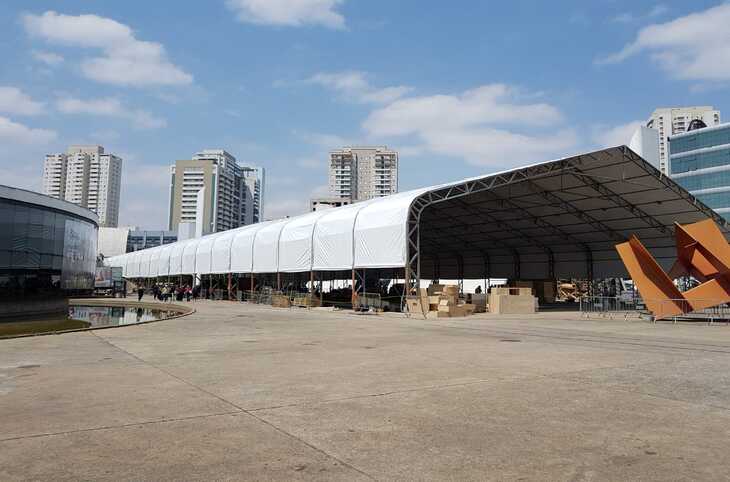 - Feiras e exposições: montagem de estandes, corredores cobertos, áreas de descanso ou praça de alimentação.