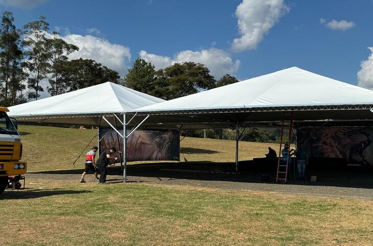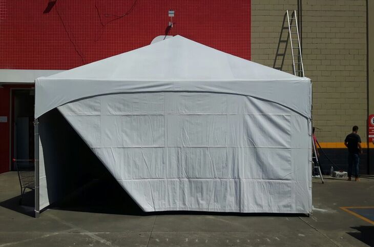 A estrutura metálica galvanizada e os sistemas de fixação por ancoragem garantem firmeza, enquanto a lona com tratamento antichama proporciona maior segurança em ambientes com grande circulação de pessoas.